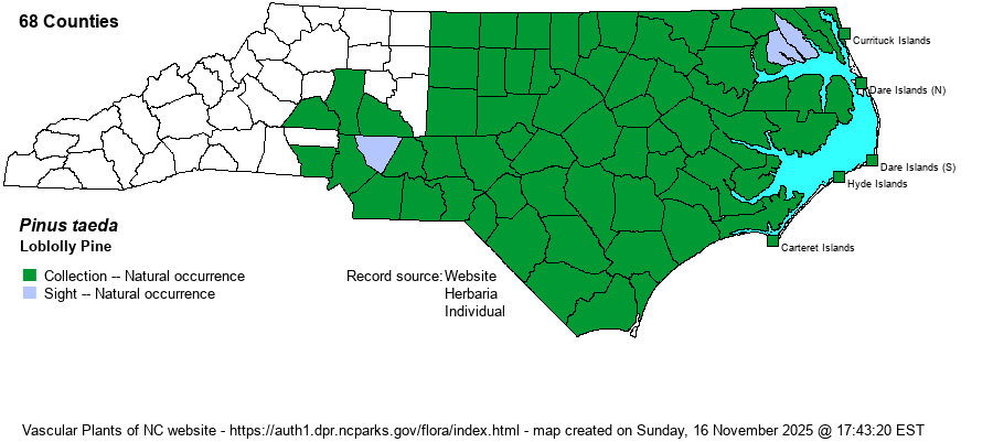 Native in the eastern piedmont and coastal areas of NC. Click to see it's range in North Carolina